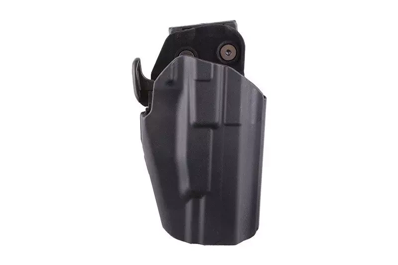 Holster il dispose d'un montage pour la ceinture avec loquetiem de 50mm de largeur, grâce auquel il est compatible avec la majorité des ceintures tactiques disponibles sur le marché. Le site montage lui-même est fixé à l'étui à l'aide de vis Allen (une clé Allen dédiée est incluse)