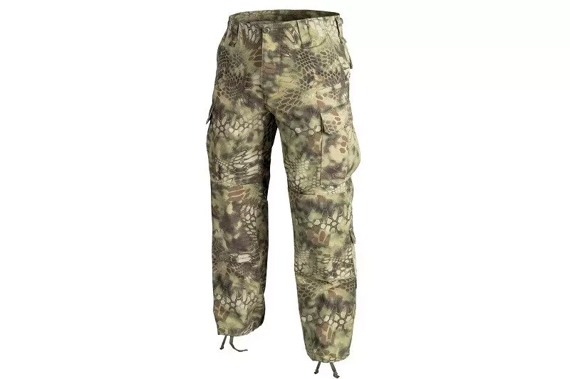 Spodnie bojówki CPU (Combat Patrol Uniform) firmy Helikon. Spodnie krojem nawiązują do munduru Wojska Polskiego wz. 2010 oraz amerykańskiego munduru ACU. Spodnie CPU charakteryzują się bardzo wysoką funkcjonalnością, posiadają 10 kieszeni (2 z przodu, 2dwie małe otwarte przednie, 2 z tyłu, 2 cargo na bokach nogawek, 2 na łydkach), na pośladkach zostały wzmocnione dodatkowa warstwą materiału, na kolanach naszyto wzmocnienia które stanowią jednocześnie kieszenie na wkłady amortyzujące. Obwód w pasie można regulować za pomocą taśm ściągających (jak w BDU).